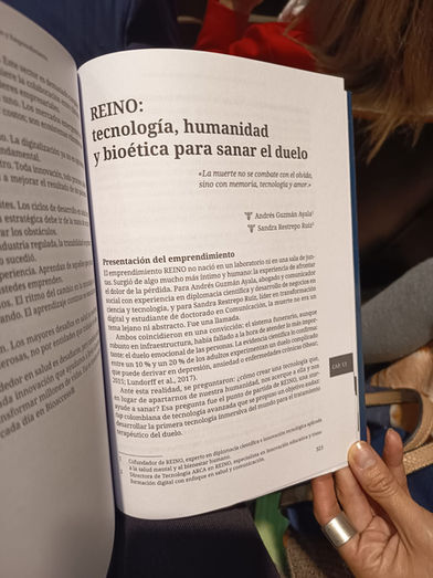 Within the framework of this work, Reino had the privilege of being invited as one of the success stories narrated in the final section, where other regional initiatives are documented. This section stipulates the importance of this startup not only in Colombia but throughout Latin America due to the innovative nature of its proposal, which focuses on technology, humanity, and bioethics to heal grief following the death of a loved one.